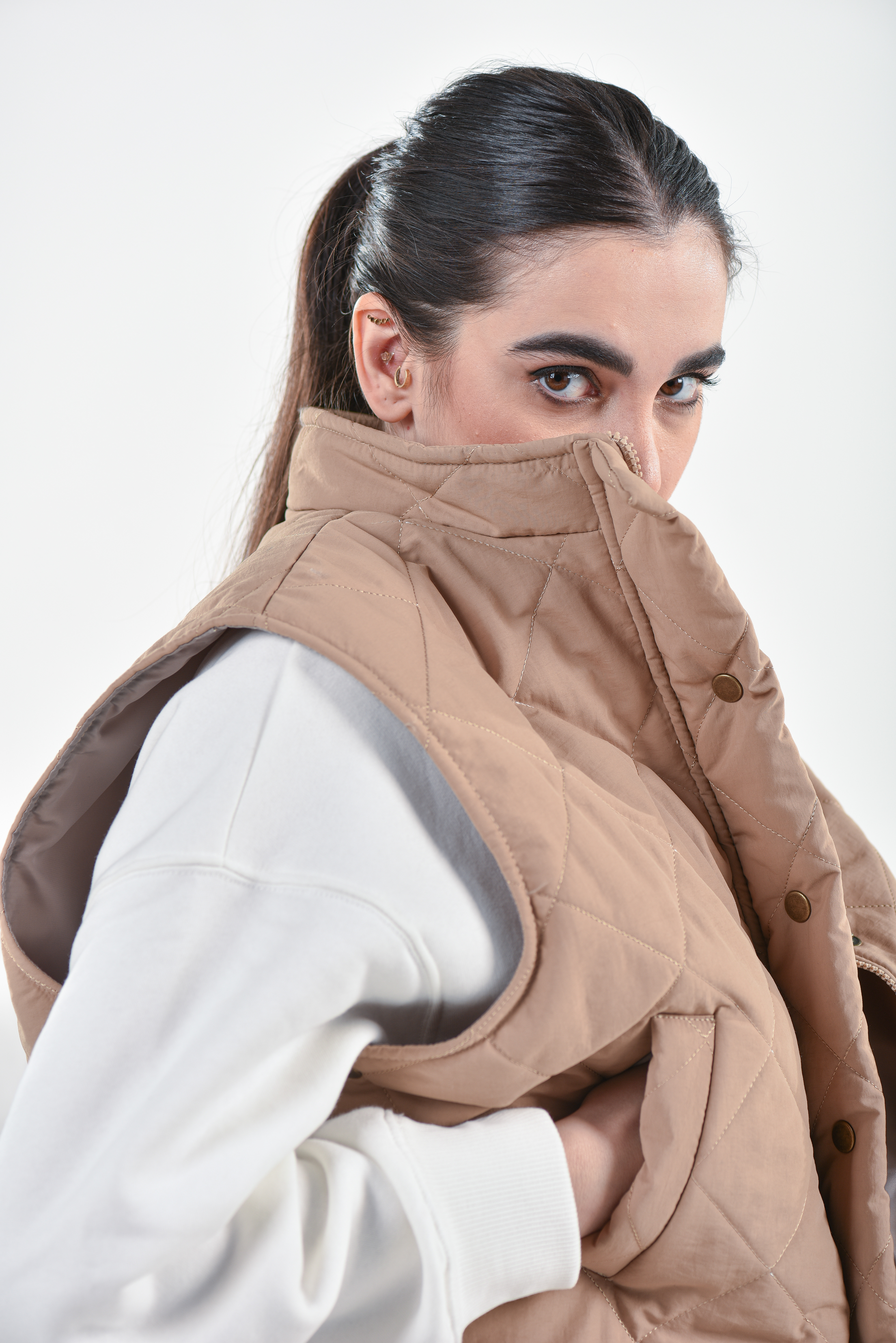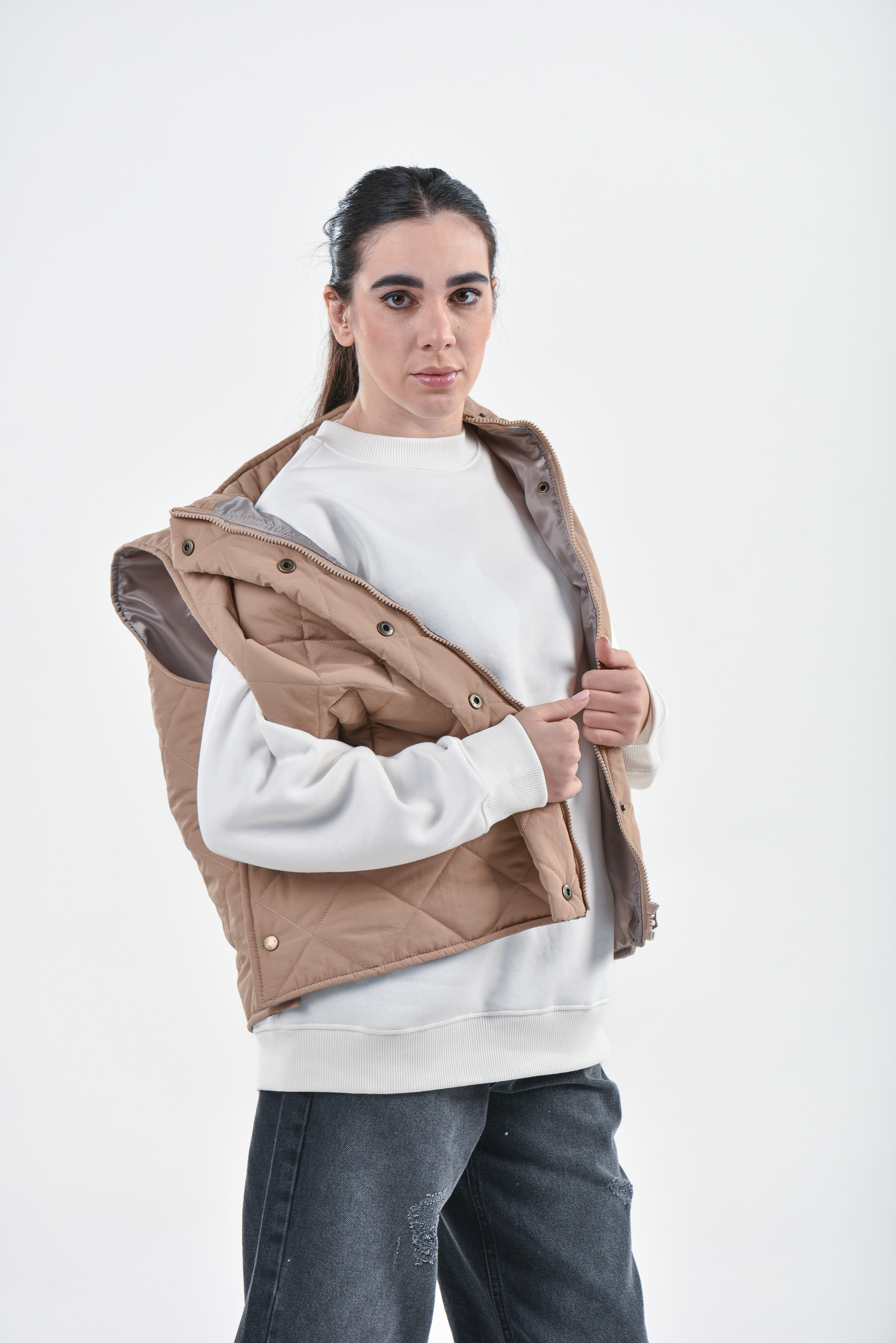 The photography sessions combined studio setups and lifestyle shots, balancing precision in lighting with a natural sense of movement. Each product was captured with attention to detail — fabric textures, silhouettes, and styling choices — while maintaining the narrative consistency of the brand.